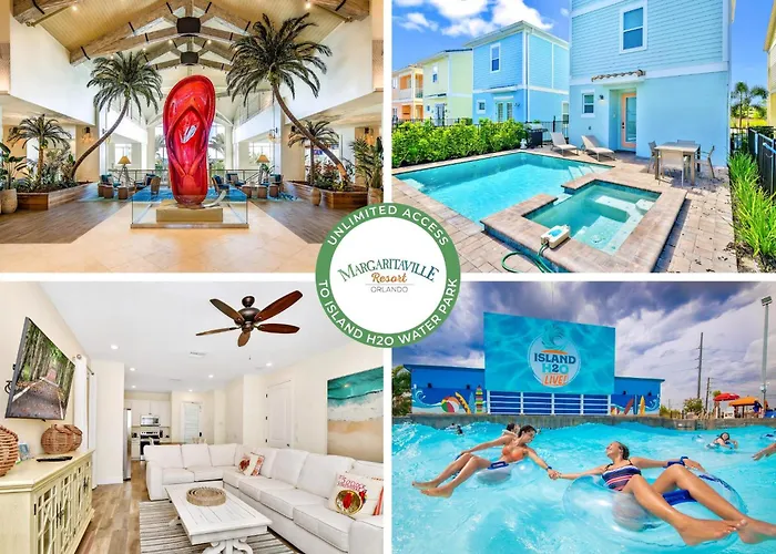 Die 4-Zimmer- Beachy Daze Cottage Near Disney With Margaritaville Resort & Island H20 Waterpark Access - 2916Sr Kissimmee empfängt Gäste im Stadtviertel Celebration, etwa 8 Fußminuten von der Acadia Estates entfernt, und bietet einen Jacuzzi.